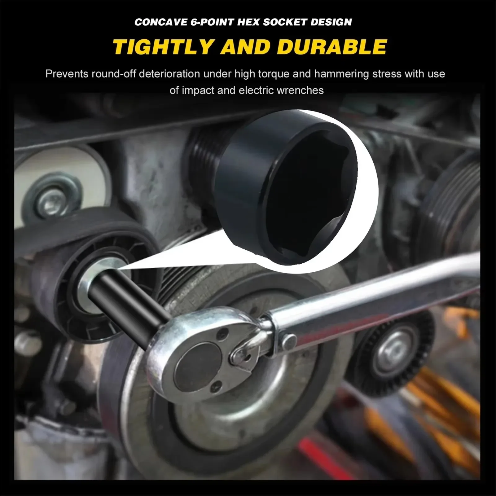 This 10-piece impact socket set is designed for heavy-duty automotive and pneumatic repair work. Each socket features a 1/2″ drive size for compatibility with air tools and impact wrenches. The deep socket design provides better access to recessed fasteners. Made from durable, high-strength materials, the sockets resist wear and withstand high torque. The universal fit makes them suitable for a wide range of metric applications. Their robust build ensures long-lasting performance in demanding environments. These sockets deliver reliable grip and stability during repairs. This set is an essential addition for mechanics, DIY enthusiasts, and professional technicians.
