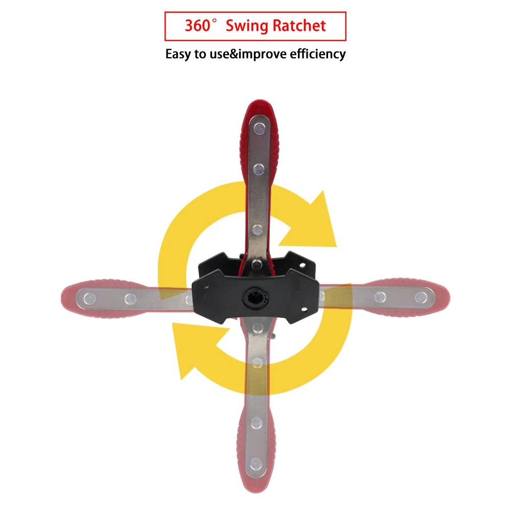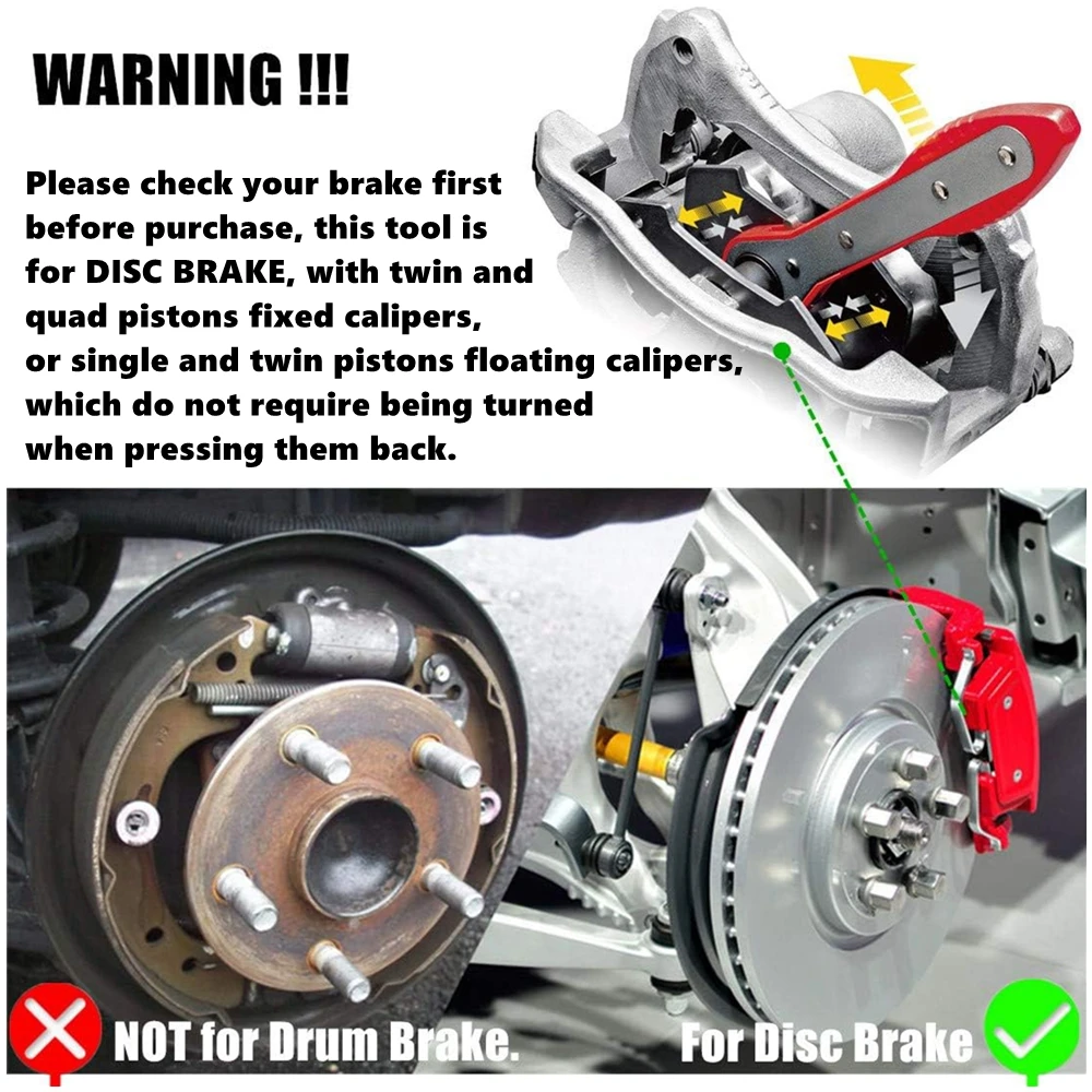 This brake caliper press tool is designed to make brake pad replacement faster, easier, and more efficient. It features a 360-degree swing ratchet mechanism that allows smooth operation in tight or awkward spaces. The tool applies even pressure to retract brake caliper pistons without damaging components. It includes two extra steel plates for added versatility and compatibility with various brake systems. Made from durable, high-strength materials, it withstands heavy use in professional and DIY environments. The ergonomic ratcheting handle provides a comfortable and secure grip for better control. This tool works well on most cars, trucks, and SUVs with disc brake systems. Its compact design ensures easy storage and transport. It is a reliable and essential tool for anyone performing brake service or maintenance.