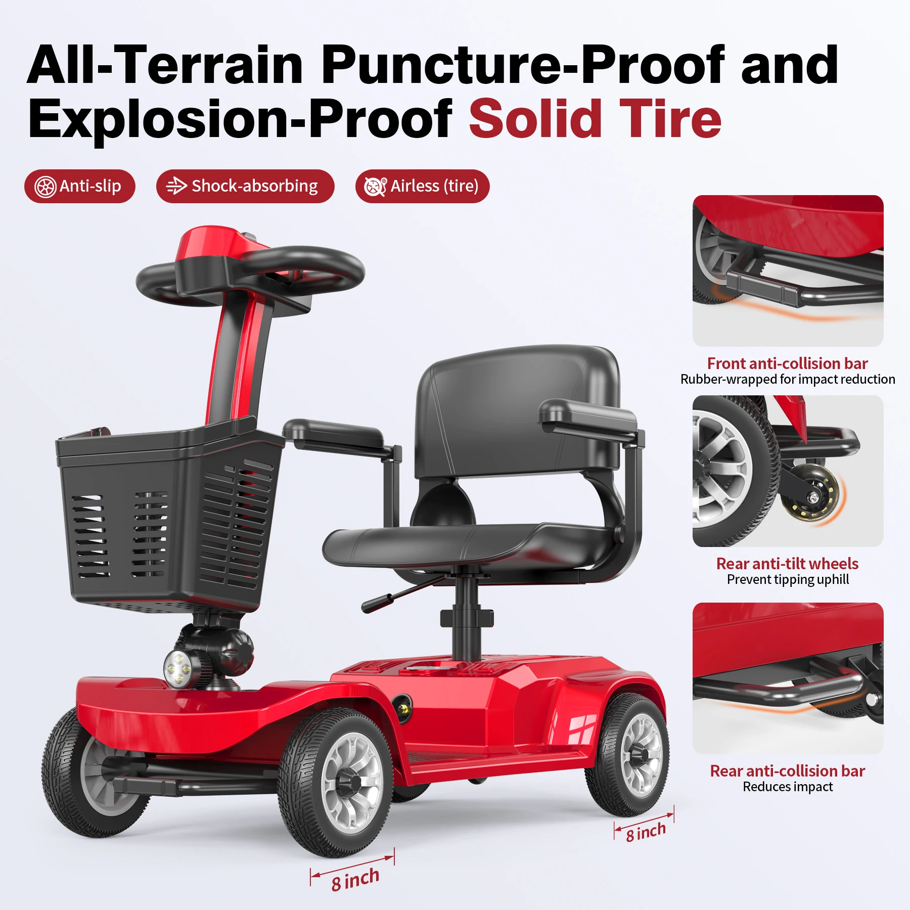 This 12AH 4-wheel mobility scooter is designed to deliver reliable and comfortable transportation for adults and elderly users. Its four-wheel configuration provides excellent stability and balance during daily travel. Powered by a durable 12AH battery, it supports dependable performance for errands and short trips. The compact and heavy-duty design makes it easy to maneuver while remaining strong and supportive. Ideal for travel, the scooter can be transported and stored with ease. User-friendly controls ensure simple operation for beginners and seniors alike. The comfortable seat helps reduce fatigue during longer rides. Built with quality materials, it offers long-term durability for everyday use. This electric powered wheelchair device enhances independence and mobility for a more active lifestyle.