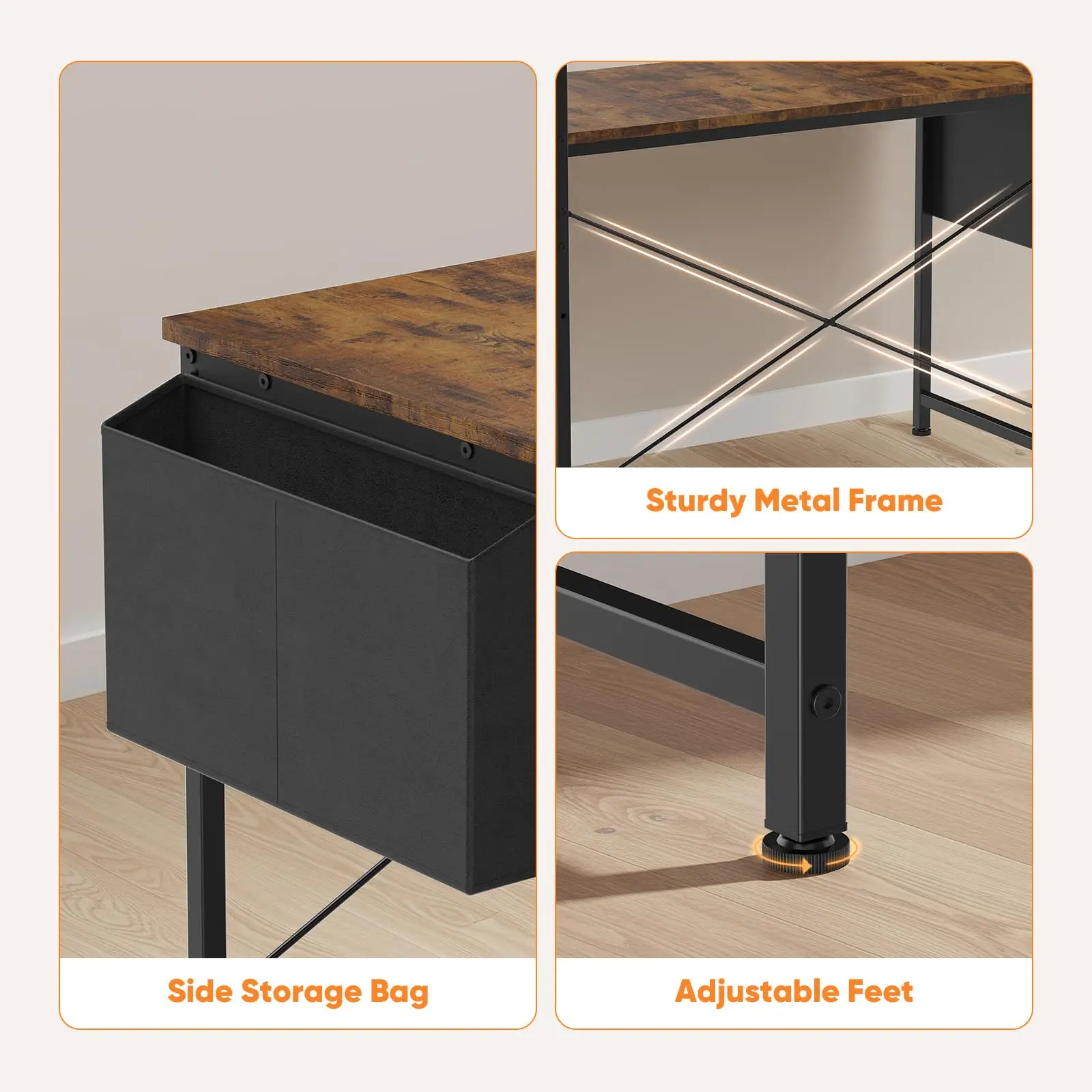 This 47-inch L shaped desk is designed to maximize workspace while fitting neatly into corners. The spacious desktop provides ample room for computers, monitors, and gaming or office essentials. A built-in storage shelf offers convenient organization for books, files, or accessories. Crafted with a sturdy wood tabletop and strong frame, it ensures stability and long-lasting use. Adjustable feet help keep the desk level on uneven floors while protecting surfaces. The included side bag adds extra storage for easy access to daily items. Ideal for home offices or gaming setups, this desk combines functionality with modern style.