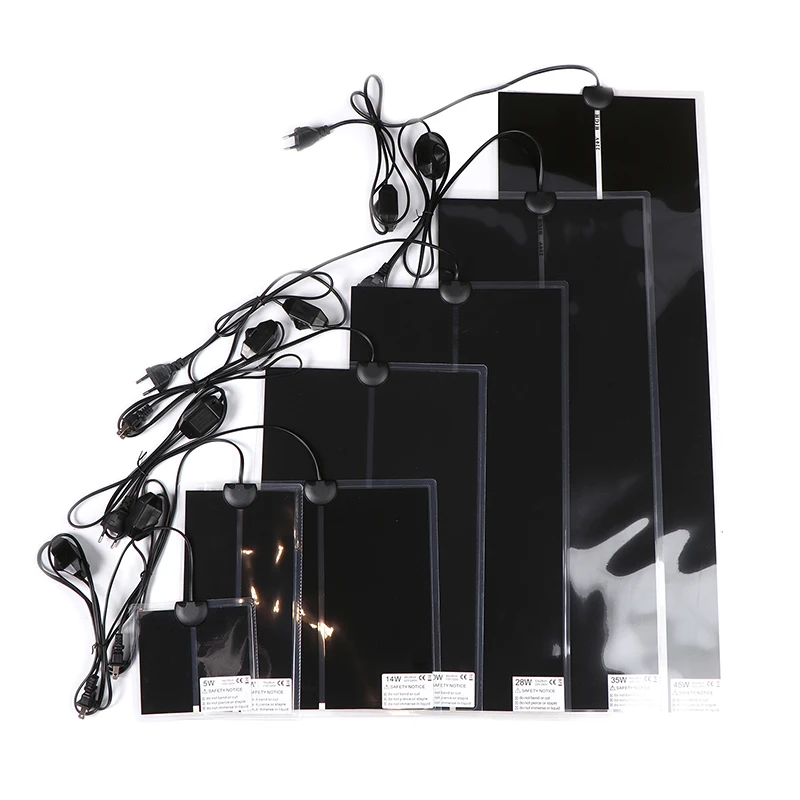 This adjustable terrarium reptile heat mat provides reliable and consistent warmth for reptiles and other small pets. With power options ranging from 5W to 45W, it is suitable for various enclosure sizes and pet needs. The included temperature controller allows precise heat adjustment to create a safe and comfortable habitat. Designed for terrariums, vivariums, and climbing pet enclosures, it supports healthy digestion and activity levels. The mat delivers even heat distribution without hot spots, ensuring pet safety. Its slim and flexible design makes installation easy under or alongside tanks. Compatible with both EU and US power standards, it offers versatile use. Durable and energy-efficient, this heat mat is ideal for reptiles, amphibians, and other heat-loving pets.