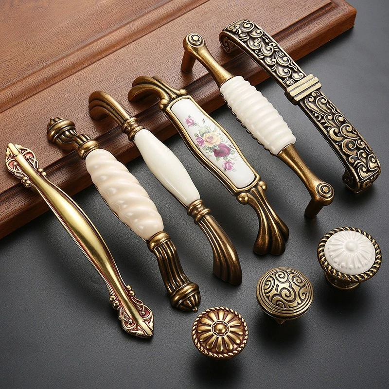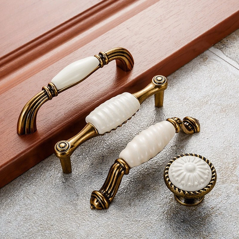 These drawer knobs and cabinet handles feature a classic European design with an antique bronze finish and white ceramic accents. Made from durable zinc alloy, they provide reliable strength and long-lasting performance. The ceramic detail adds an elegant and timeless touch to furniture. Suitable for drawers, cabinets, wardrobes, and cupboard doors throughout the home. The smooth surface offers a comfortable grip for easy daily use. Their vintage style complements European, classic, and traditional interiors. Ideal for furniture upgrades, renovations, or DIY home décor projects.