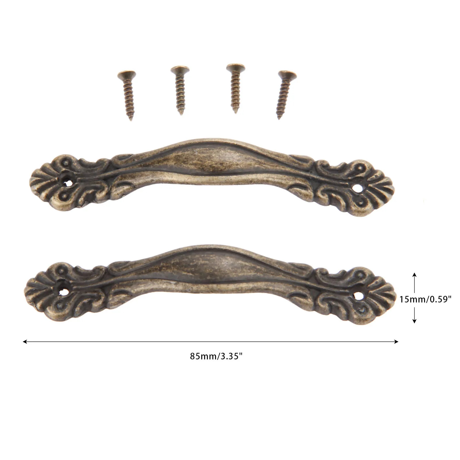This 2-set antique bronze handle features a vintage flower design inspired by old European style. Made from durable zinc alloy, it offers reliable strength and long-lasting use. The classic bronze finish adds an elegant and retro charm to furniture and cabinetry. Measuring 85×15mm, it is ideal for kitchen cabinets, drawers, cupboards, and furniture doors. The decorative flower pull enhances both functionality and visual appeal. Included screws make installation quick and convenient. Perfect for restoring antique furniture or adding a vintage accent to modern interiors.
