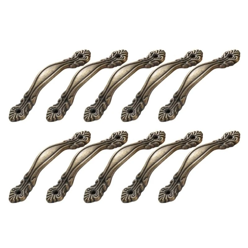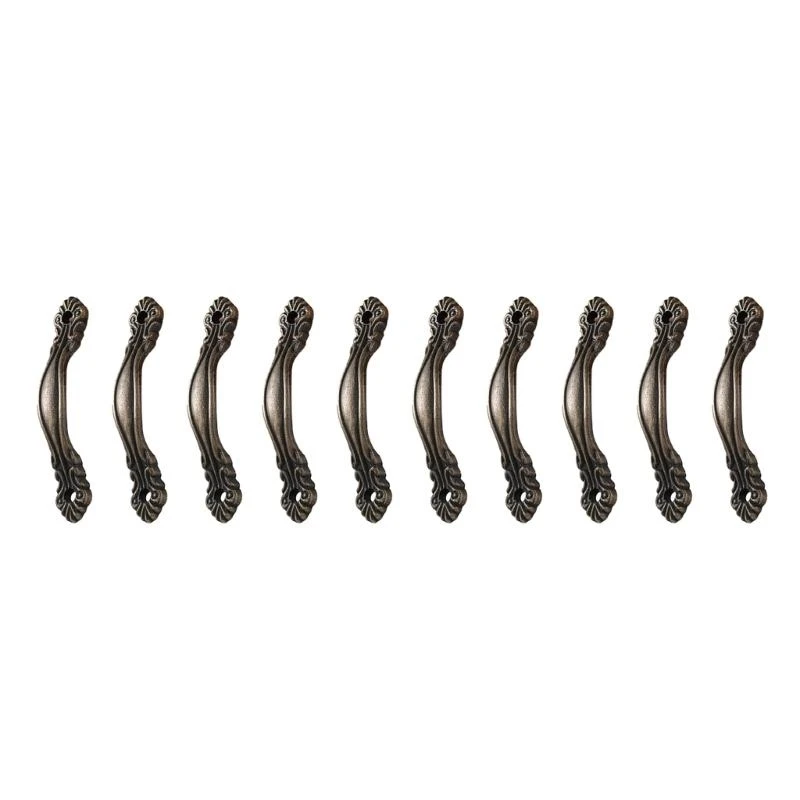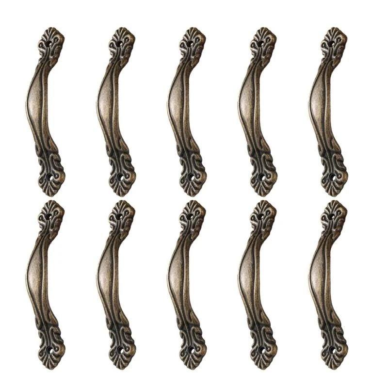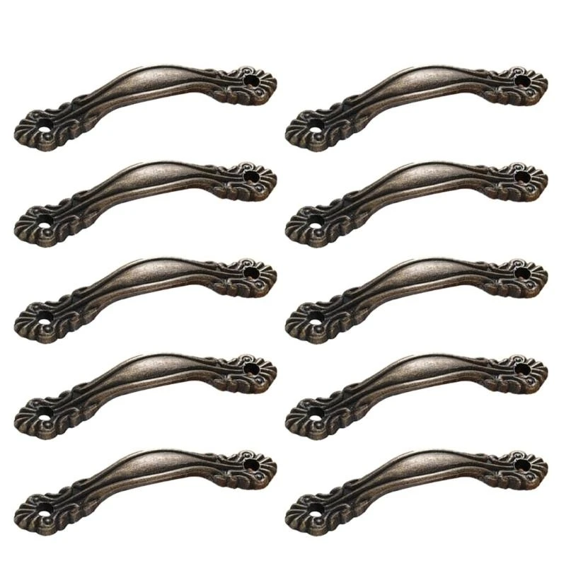 This 10-piece set of antique drawer handles features a unique metal design that adds vintage character to furniture. Crafted from durable metal, these pulls are built to withstand regular use while maintaining their classic appearance. The antique finish complements wine storage boxes, wooden chests, drawers, and cabinets. Their solid construction provides a secure and comfortable grip for easy opening and closing. Ideal for restoration projects, DIY crafts, or upgrading old furniture. The distinctive style enhances both decorative and functional appeal. Easy installation makes them suitable for home or professional use.