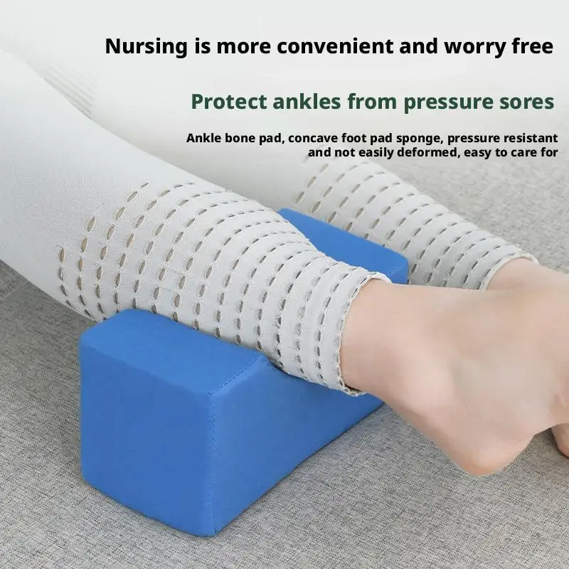 This ankle support pillow is designed to elevate the foot and reduce pressure for bedridden or elderly patients. The soft sponge padding provides gentle cushioning to help prevent bedsores and skin irritation. Its contoured shape keeps the ankle comfortably positioned while maintaining proper airflow. The ergonomic elevation helps improve blood circulation and reduces swelling. It is suitable for use in homes, hospitals, and elderly care facilities. The lightweight cushion is easy to place, adjust, and remove as needed. A breathable cover helps keep the user cool and comfortable during long periods of use. This pad is ideal for patients with limited mobility or recovering from injury. The durable construction ensures reliable support throughout daily use. It offers a simple yet effective way to improve comfort, prevent pressure injuries, and support healthier rest.