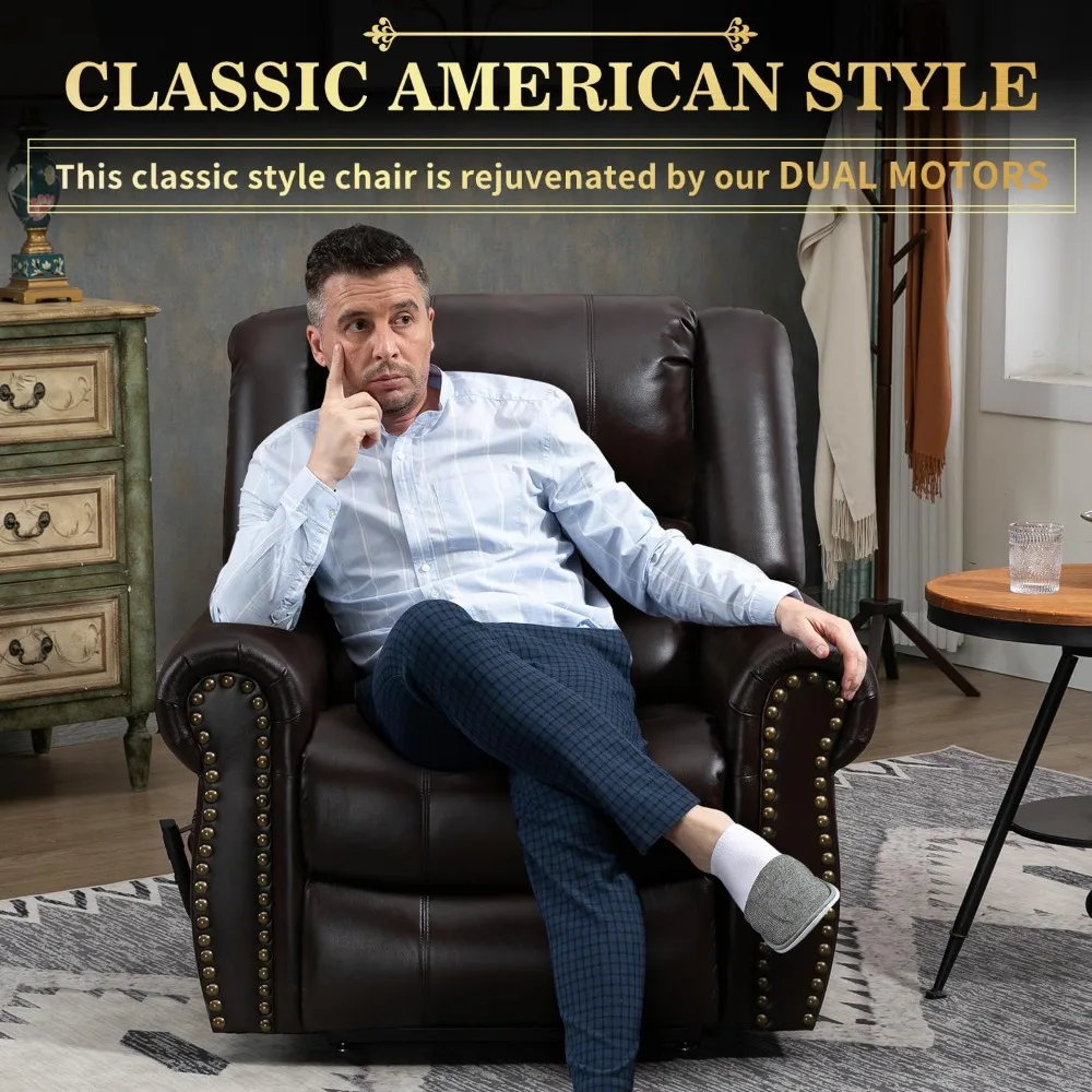 YOFE Upgraded Flagship Dual Motor Lay Flat Power Lift Recliner Chair — Oversized and roomy, with independent backrest/footrest control and full flat-lay capability; good if you want extra space or taller frame accommodation.