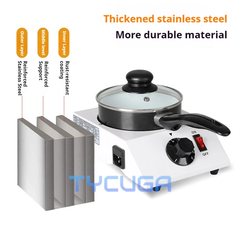 This electric chocolate tempering machine provides a simple and efficient way to melt and warm chocolate for all your baking and dessert projects. Available in single or dual-tank options, it allows you to work with different chocolate types or colors at the same time. Its 40W/80W heating system offers stable, controlled temperatures that prevent burning and ensure smooth, perfectly melted results. The non-stick melting pots make pouring, stirring, and cleaning effortless. Designed for both beginners and home confectionery enthusiasts, it’s ideal for making truffles, coatings, fondue, candy molds, and decorative toppings. Compact and lightweight, it fits easily on any countertop without taking up much space. Compatible with both 110V and 220V, it can be used in various settings or while traveling. Reliable, easy to operate, and versatile, this chocolate warmer is a must-have tool for creating professional-quality sweets at home.