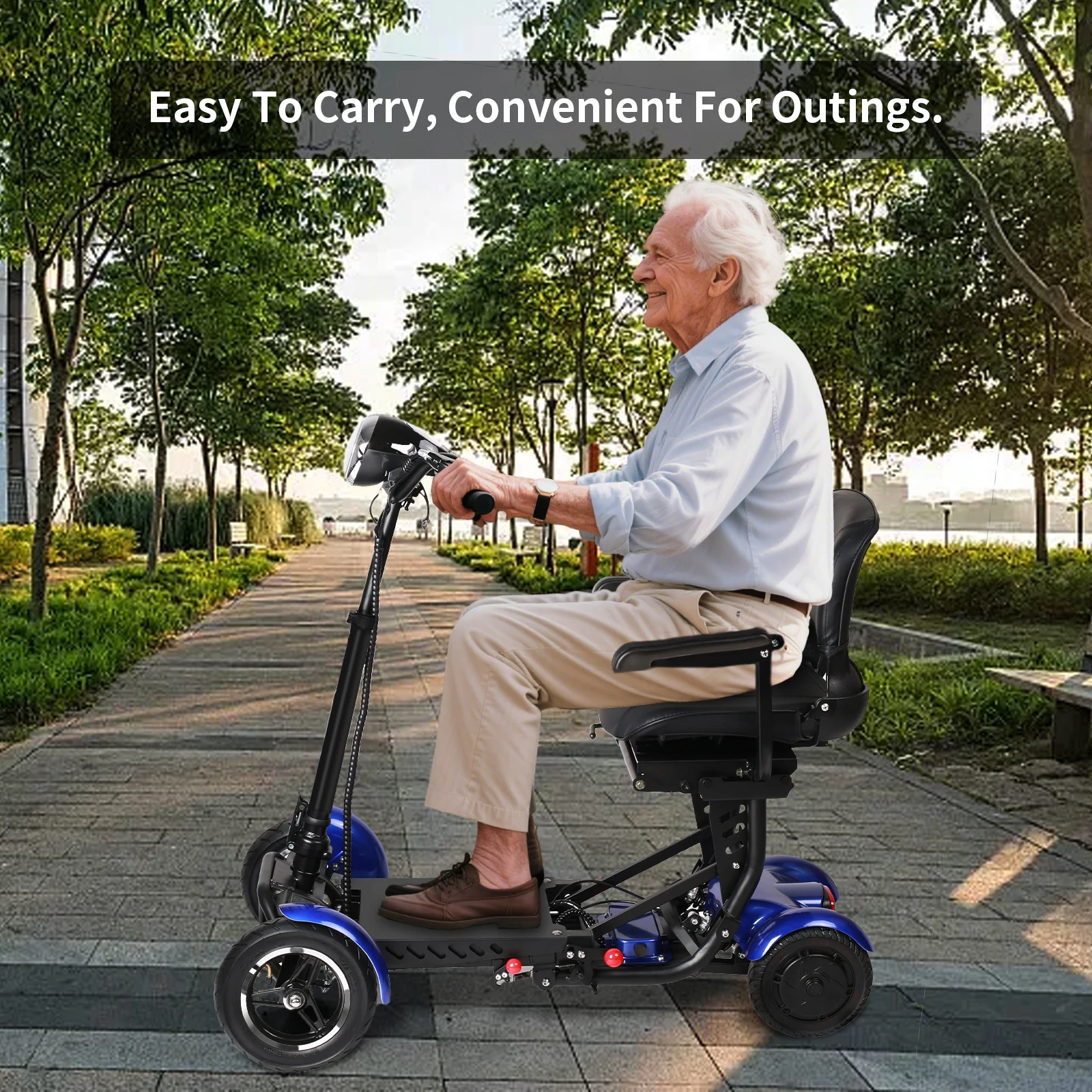 This 4-wheel electric scooter is designed to provide stable and reliable mobility for disabled adults. Its four-wheel structure enhances balance and safety during everyday use. Powered by dual 250W motors, it delivers smooth and consistent performance on various surfaces. The folding design allows for easy storage and transport, making it suitable for travel and home use. User-friendly controls ensure simple operation for riders of all experience levels. The sturdy frame supports comfortable seating and confident riding. This electric mobility scooter is ideal for daily commuting, errands, and leisure rides. It helps users maintain independence while enjoying a practical and modern mobility solution.