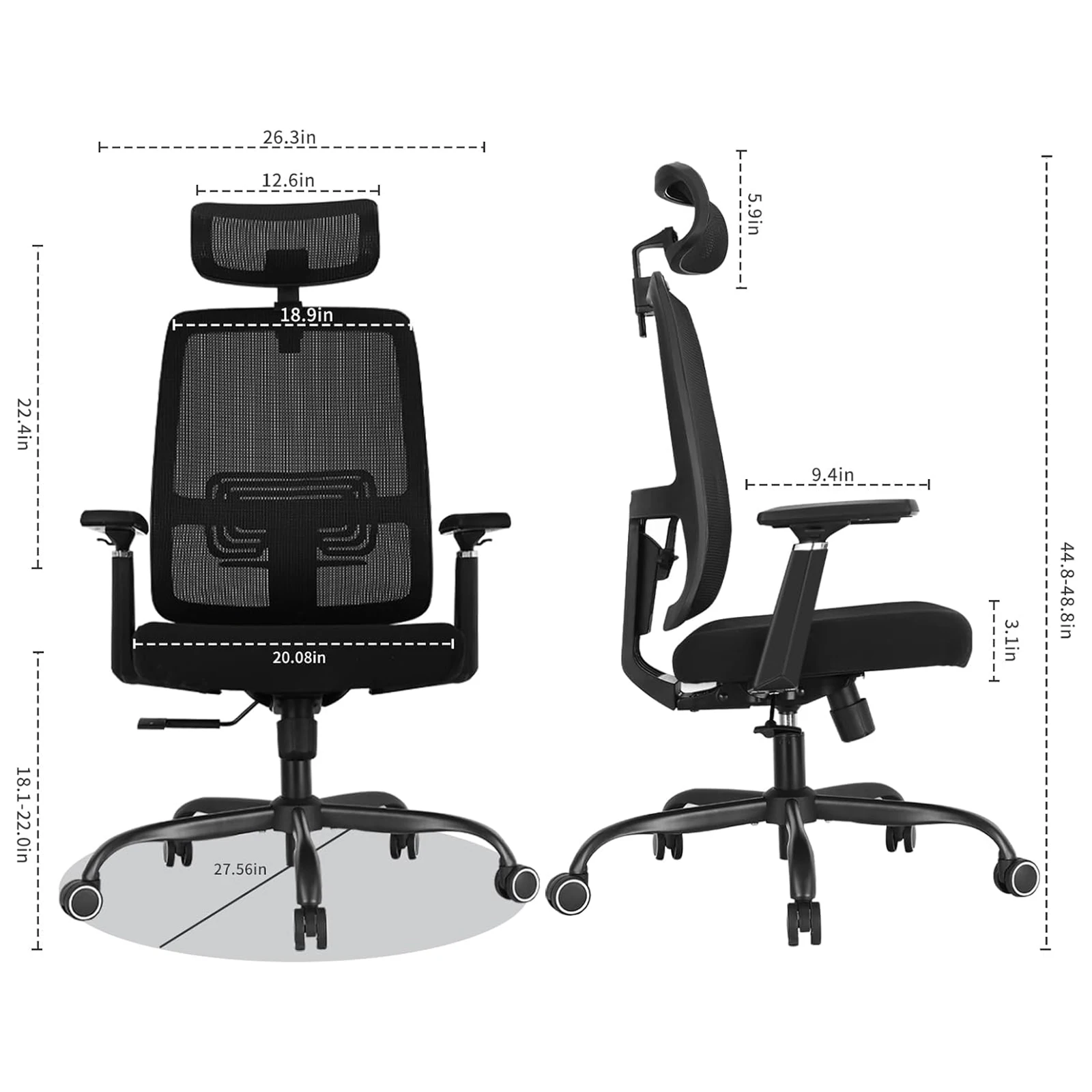 This new ergonomic mesh office chair is designed to provide lasting comfort and support throughout the workday. The high back design with adjustable lumbar support helps maintain proper posture and reduce back strain. Breathable mesh material promotes airflow to keep you cool and comfortable. Featuring a 120° tilt function, it allows you to recline and relax during breaks. Soft flip-up armrests offer flexible support and space-saving convenience. The adjustable seat height ensures a customized fit for different desks and users. Built with a stable base and smooth-rolling casters, this chair is ideal for home offices or professional workspaces.