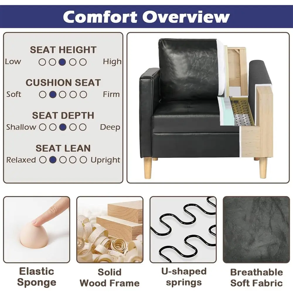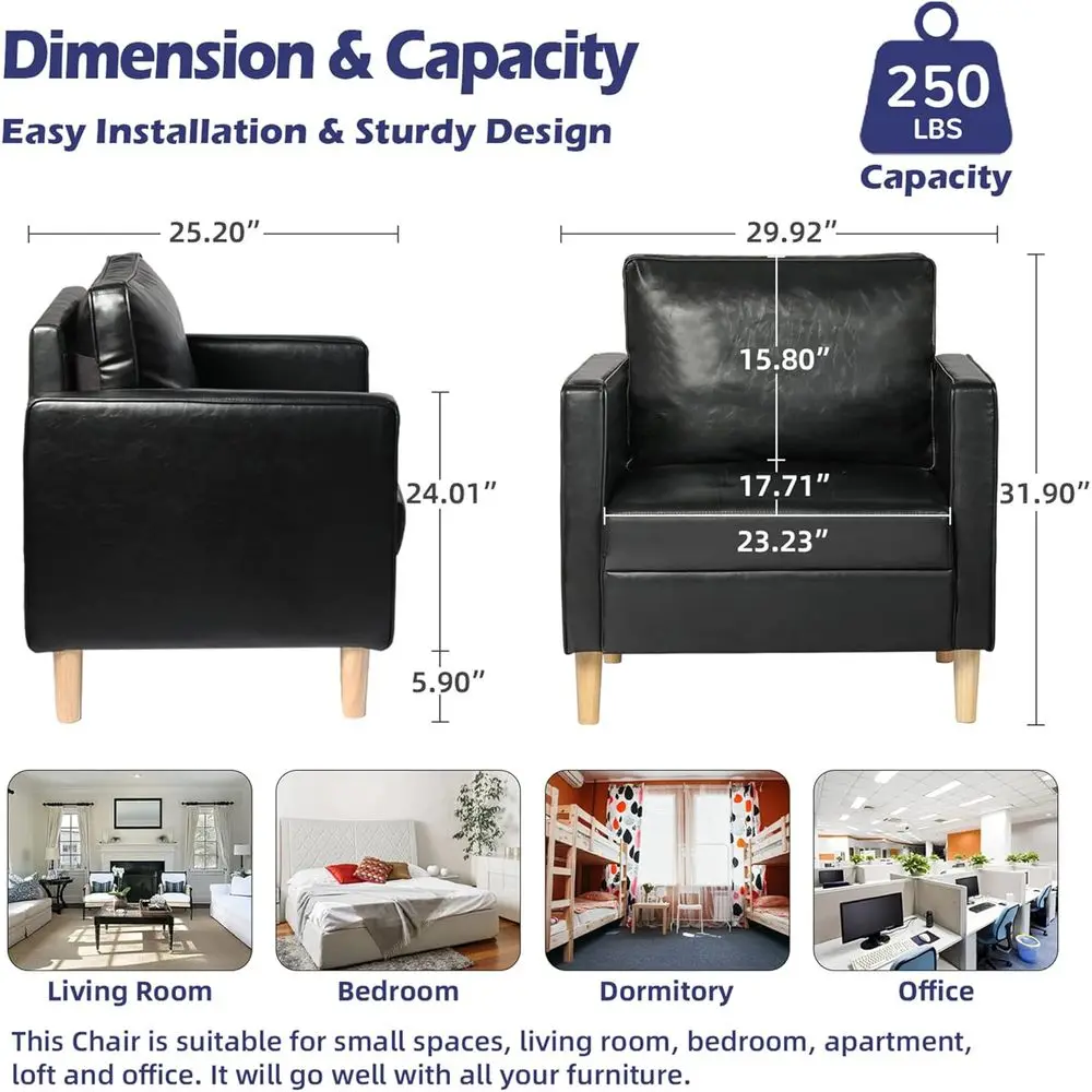 This set of two faux leather accent chairs adds comfort and modern style to any living room or bedroom. Upholstered in smooth faux leather, the chairs are easy to clean and maintain for daily use. The compact size makes them ideal for small spaces while still providing comfortable seating for adults. Soft cushioning offers support for reading, relaxing, or casual conversations. The sturdy frame ensures stability and long-lasting durability. Their clean, versatile design blends easily with various décor styles. Suitable for living rooms, bedrooms, offices, or reading corners, these chairs combine practicality with contemporary elegance.