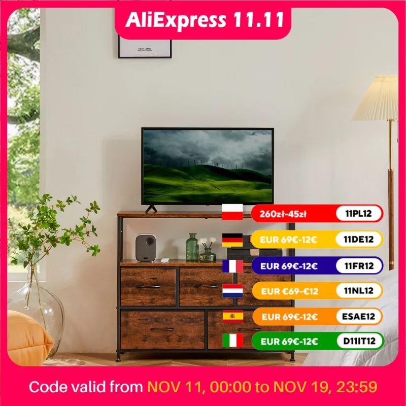 This Fireplace TV Stand Dresser combines warmth, storage, and modern design in one versatile piece. It features an integrated electric fireplace that adds a cozy ambiance to any bedroom or living area. The unit includes five fabric drawers, providing ample space to organize clothing, accessories, or household essentials. Its wide tabletop works perfectly as a TV stand or display shelf for décor. The sturdy frame ensures long-lasting durability while maintaining a stylish and lightweight structure. The fireplace insert includes adjustable flame settings to match your preferred atmosphere. This multifunctional dresser doubles as a storage cabinet, making it ideal for small apartments or rooms needing extra organization. Its modern look blends seamlessly with a variety of décor styles. Easy-to-pull fabric drawers help keep belongings neat and hidden for a cleaner appearance. This stand brings comfort, style, and practical storage together, enhancing any home environment.