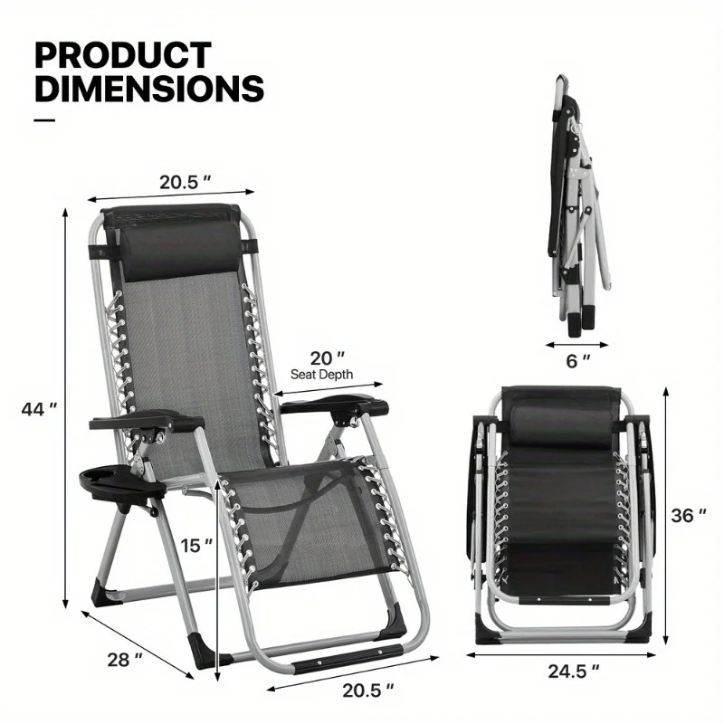 This foldable zero gravity chair offers effortless comfort for outdoor relaxation. Its ergonomic design helps reduce pressure on the spine by evenly distributing body weight. The detachable cushion provides customizable support for the head or lower back. A sturdy and durable frame ensures stability on patios, campsites, or poolside areas. The breathable fabric keeps you cool during extended lounging. Its smooth reclining mechanism allows you to adjust positions with ease. The chair folds compactly for simple storage and travel. Whether used outdoors or indoors, it delivers a comfortable and supportive seating experience. The weather-resistant materials make it suitable for year-round use. This recliner combines portability, comfort, and durability for any relaxing environment.