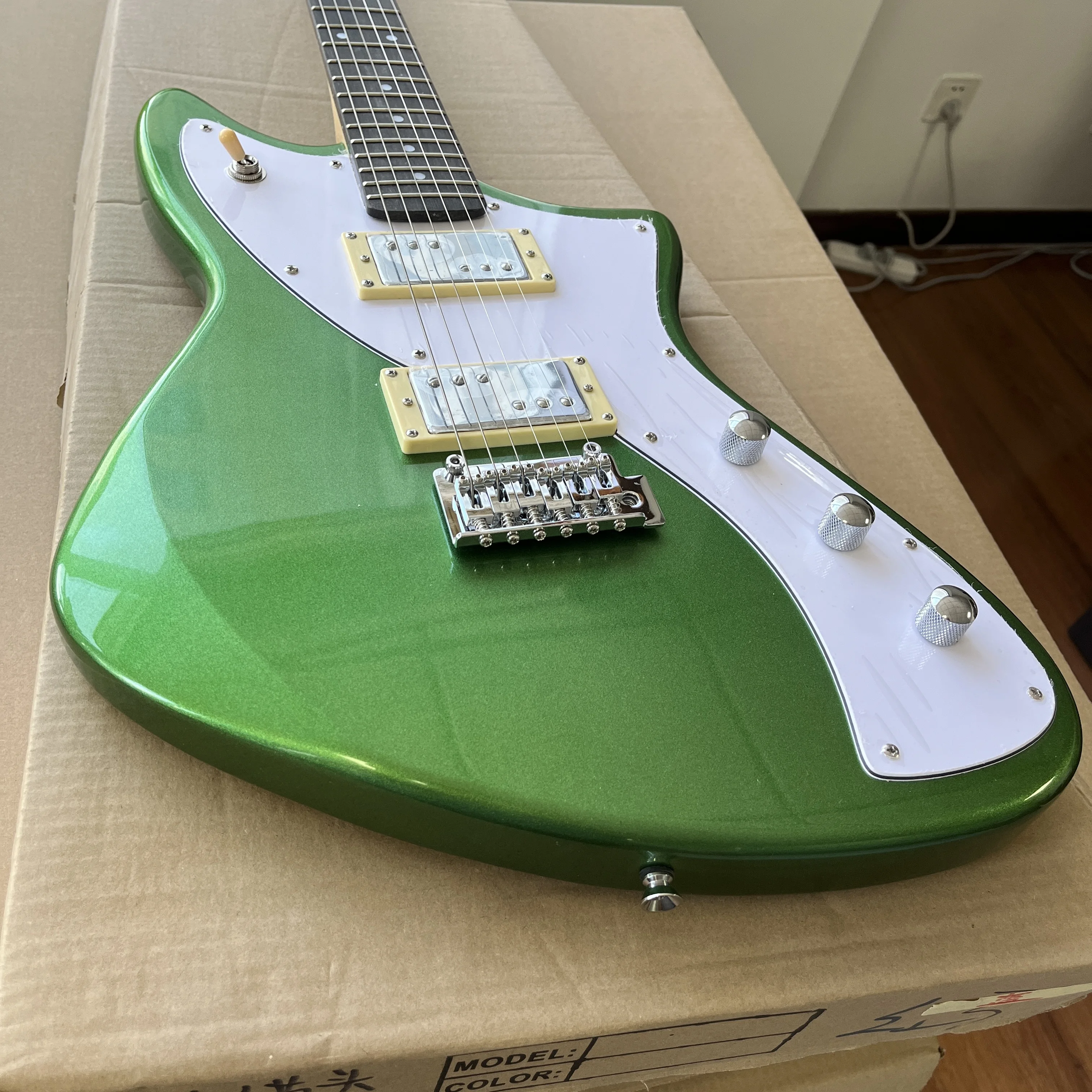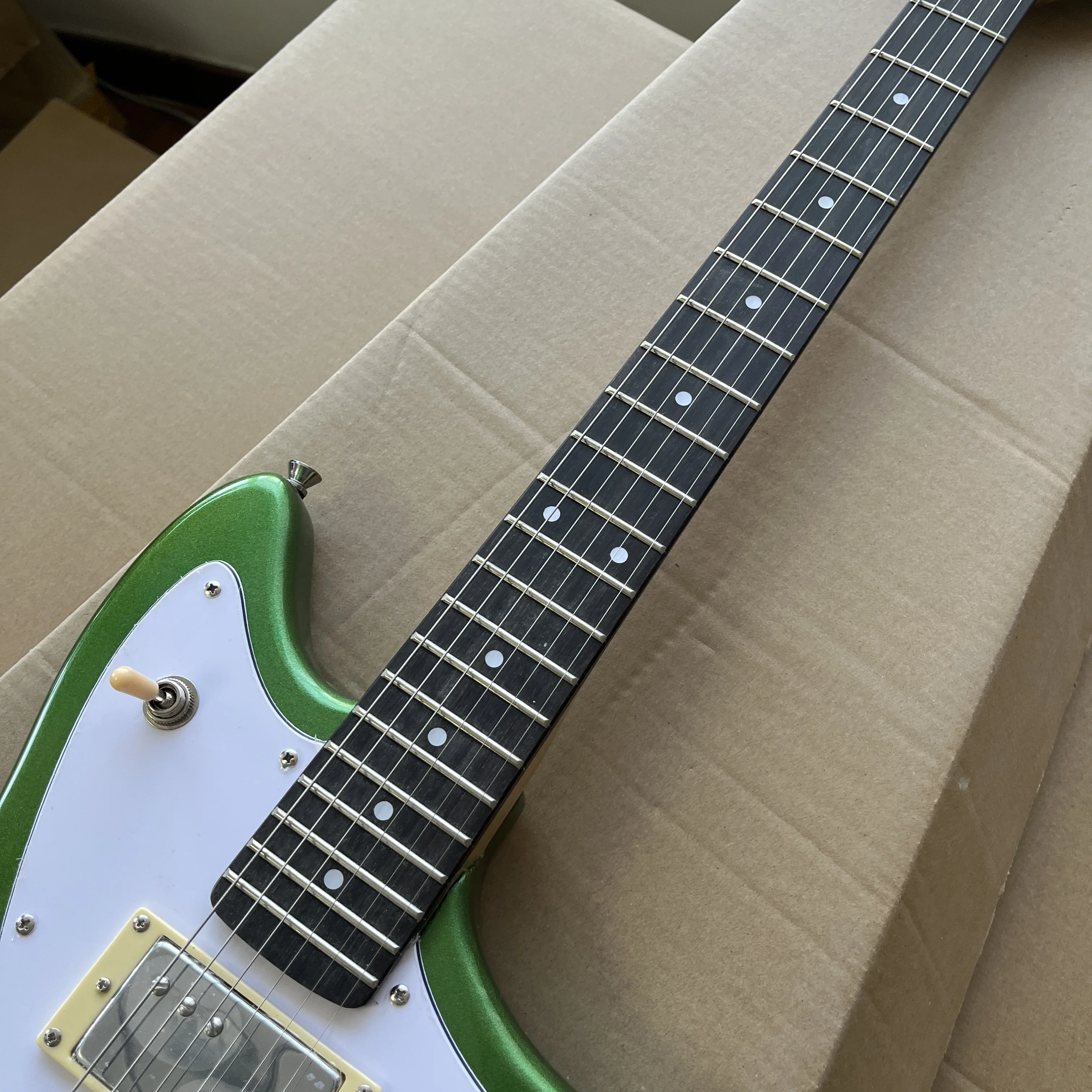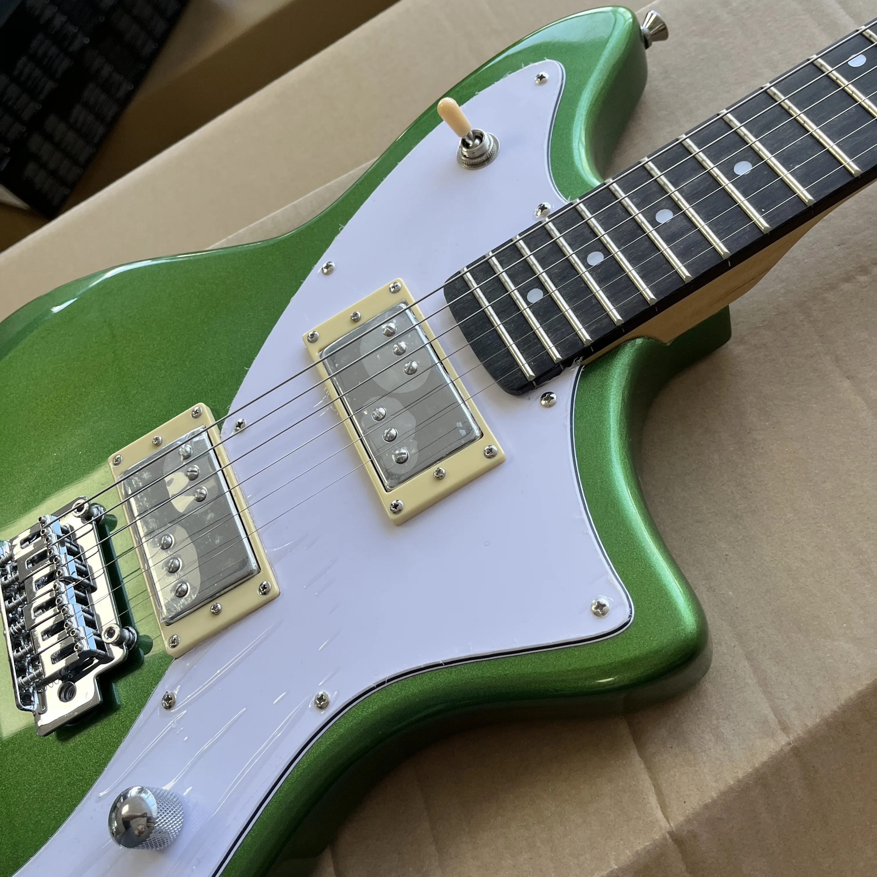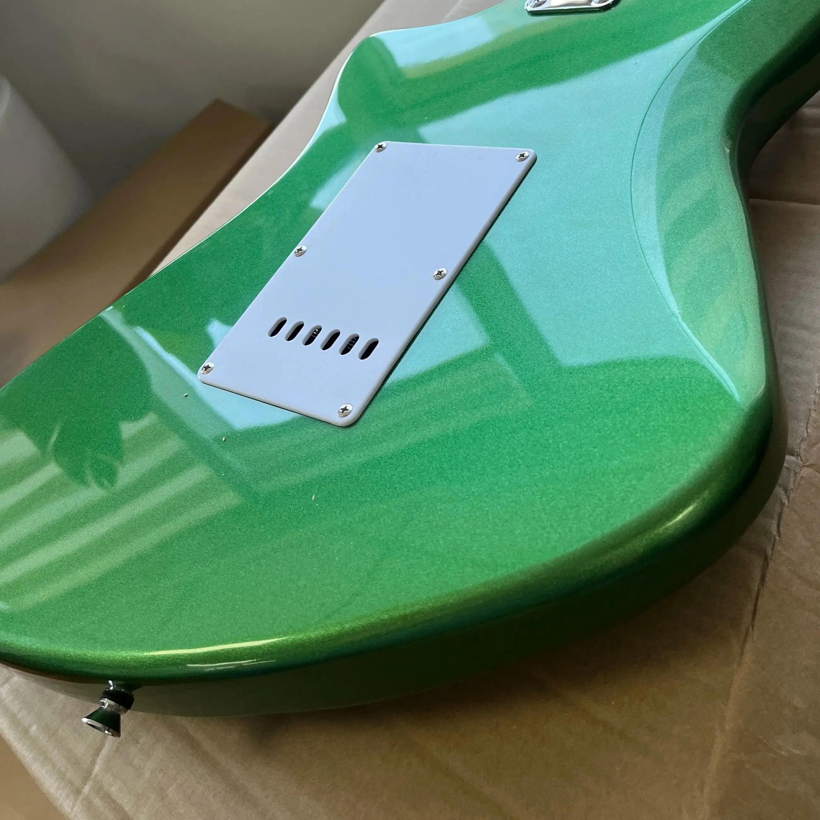 This electric guitar features a striking green body paired with sleek silver accessories for a modern, eye-catching look. Equipped with dual H-H humbucker pickups, it delivers powerful output, warm lows, and reduced noise, making it ideal for rock, blues, and metal styles. The rosewood fingerboard offers a smooth playing feel with excellent tonal balance and comfortable fretting. Its solid body design provides strong sustain and reliable performance for both practice and stage use. Silver hardware adds durability while enhancing the guitar’s clean, professional appearance. Designed for easy playability, it suits beginners as well as intermediate players. Stable tuning machines help maintain accurate pitch during extended sessions. The guitar is shipped from a US warehouse for faster delivery and dependable service. A versatile and stylish instrument suitable for home practice, recording, or live performance.