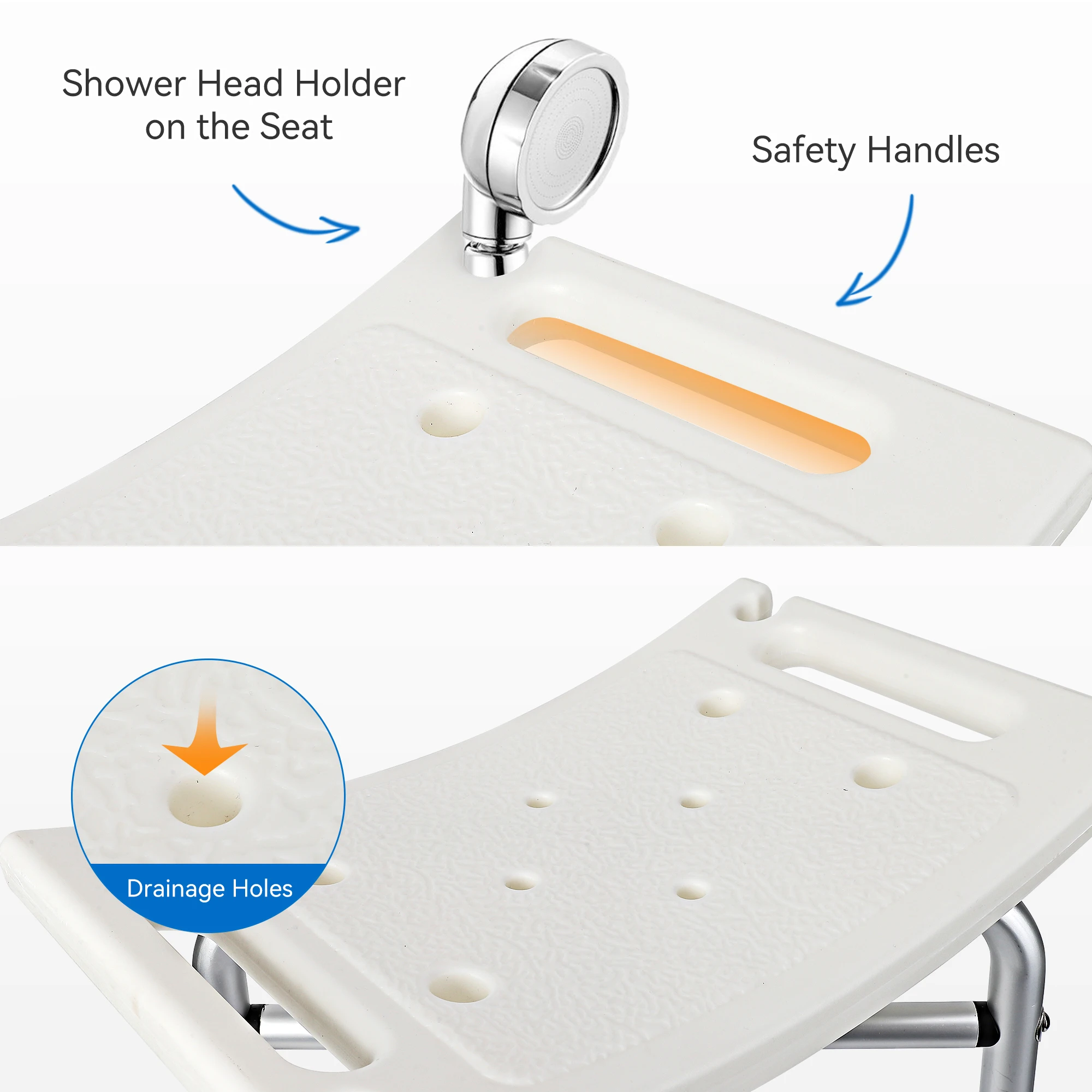 This heavy-duty adjustable shower chair provides superior stability and comfort for elderly users, disabled individuals, or anyone needing extra support while bathing. Built to hold up to 550 pounds, it features a reinforced frame designed for long-lasting strength and reliability. The adjustable height legs allow the chair to be tailored to each user, ensuring a safe and ergonomic seating position. Non-slip feet keep the bench steady on wet shower floors, reducing the risk of slips and falls. The wide, supportive seat includes drainage holes that prevent water buildup and enhance hygiene. Lightweight yet extremely sturdy, this shower bench is easy to move, reposition, and clean. Ideal for home bathrooms, assisted living environments, and post-surgery recovery, it provides a secure and comfortable bathing experience. This chair delivers the perfect balance of safety, independence, and durability for everyday use.