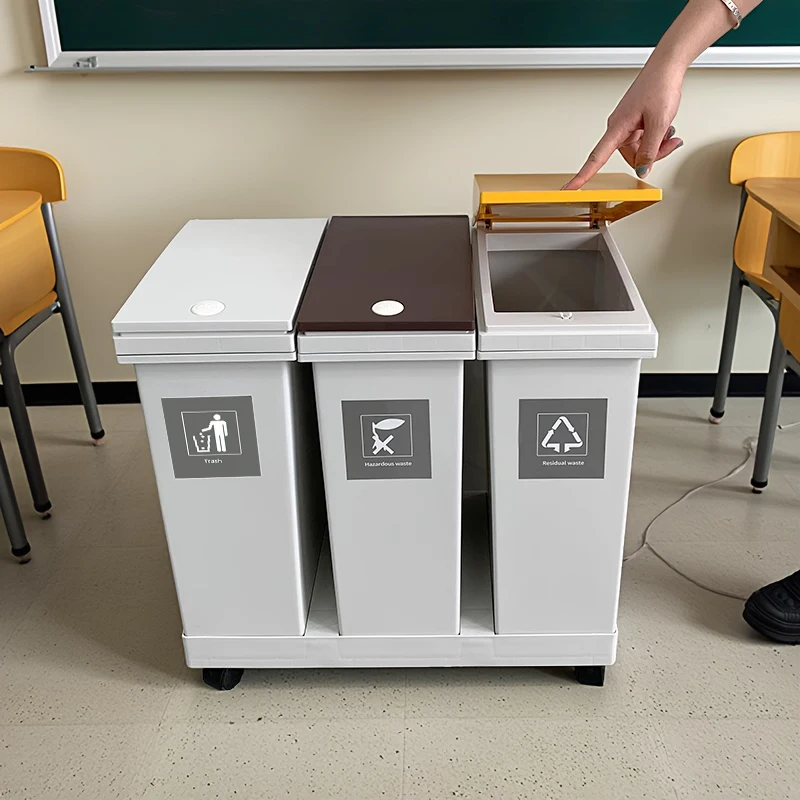 This large kitchen garbage bin is designed for efficient dry and wet waste sorting. Available in 36L and 60L capacities, it meets the needs of both small and high-traffic environments. The separated sorting design helps maintain cleanliness and supports organized waste management. Its movable structure allows for easy repositioning and convenient use in different spaces. Built for versatility, it is suitable for kitchens, hotels, living rooms, offices, and schools. The durable construction ensures long-lasting daily use. This garbage bin offers a practical and hygienic solution for modern waste disposal.