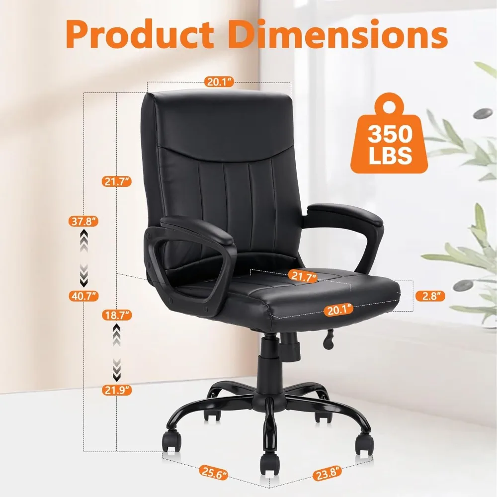 This leather executive office chair is designed to provide comfort and professional style for daily work. The ergonomic mid-back design offers reliable lumbar support to help maintain proper posture. Soft padded armrests reduce shoulder and arm fatigue during long sitting periods. Upholstered in smooth leather, it delivers a sleek look that is easy to clean and maintain. The swivel rolling base allows smooth movement and flexibility around your workspace. Adjustable height makes it suitable for different desk and user needs. Built with a sturdy frame, it ensures stability and durability. Ideal for home offices or professional settings, this chair combines comfort, support, and modern executive appeal.
