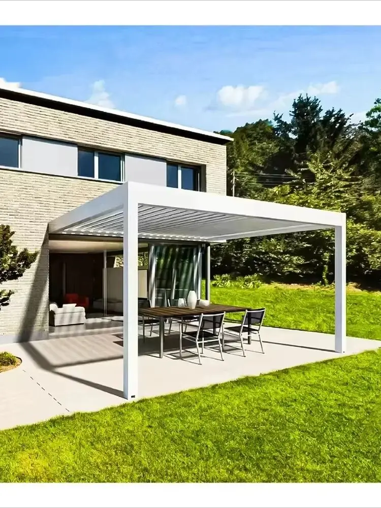 This motorized retractable pergola provides flexible shade and protection for your outdoor patio or garden. Built with a durable aluminum frame, it offers excellent strength, rust resistance, and long-lasting performance. The waterproof canopy shields you from sun and rain, making it ideal for year-round outdoor use. With the included remote control, you can easily extend or retract the cover to adjust sunlight and airflow. Its modern, minimalist design complements a wide range of outdoor décor styles. The pergola creates a comfortable space for relaxing, dining, or entertaining outdoors. Perfect for patios, gardens, decks, and backyard lounging areas.