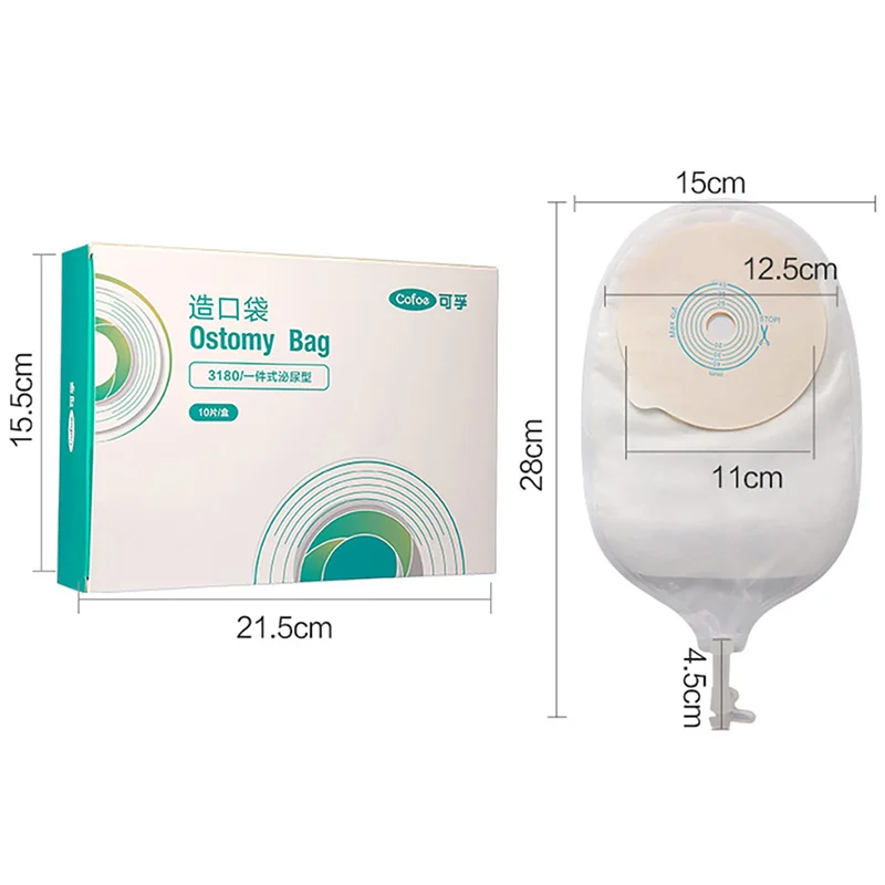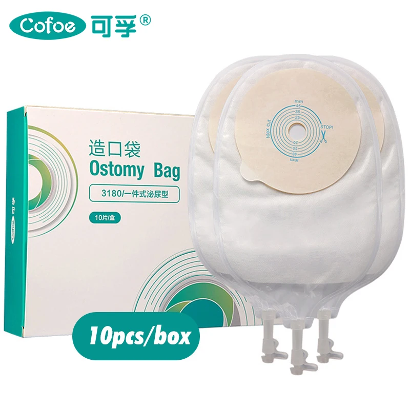 These Cofoe medical urostomy bags are designed for secure and comfortable urinary diversion care. Each one-piece bag features a leak-proof construction to ensure reliable use throughout the day. The adjustable 20–45mm cutting range fits a variety of stoma sizes. A convenient clip-on closure makes emptying and sealing quick and hygienic. Soft, skin-friendly materials help reduce irritation and provide all-day comfort. The odor-control design offers added confidence in daily activities. These disposable bags are simple to apply and remove, making them suitable for both new and experienced ostomy users. The reinforced adhesive ring helps maintain a strong, stable seal. Lightweight construction ensures discreet wear under clothing. This Cofoe ostomy system provides dependable protection and ease of use for everyday medical care.