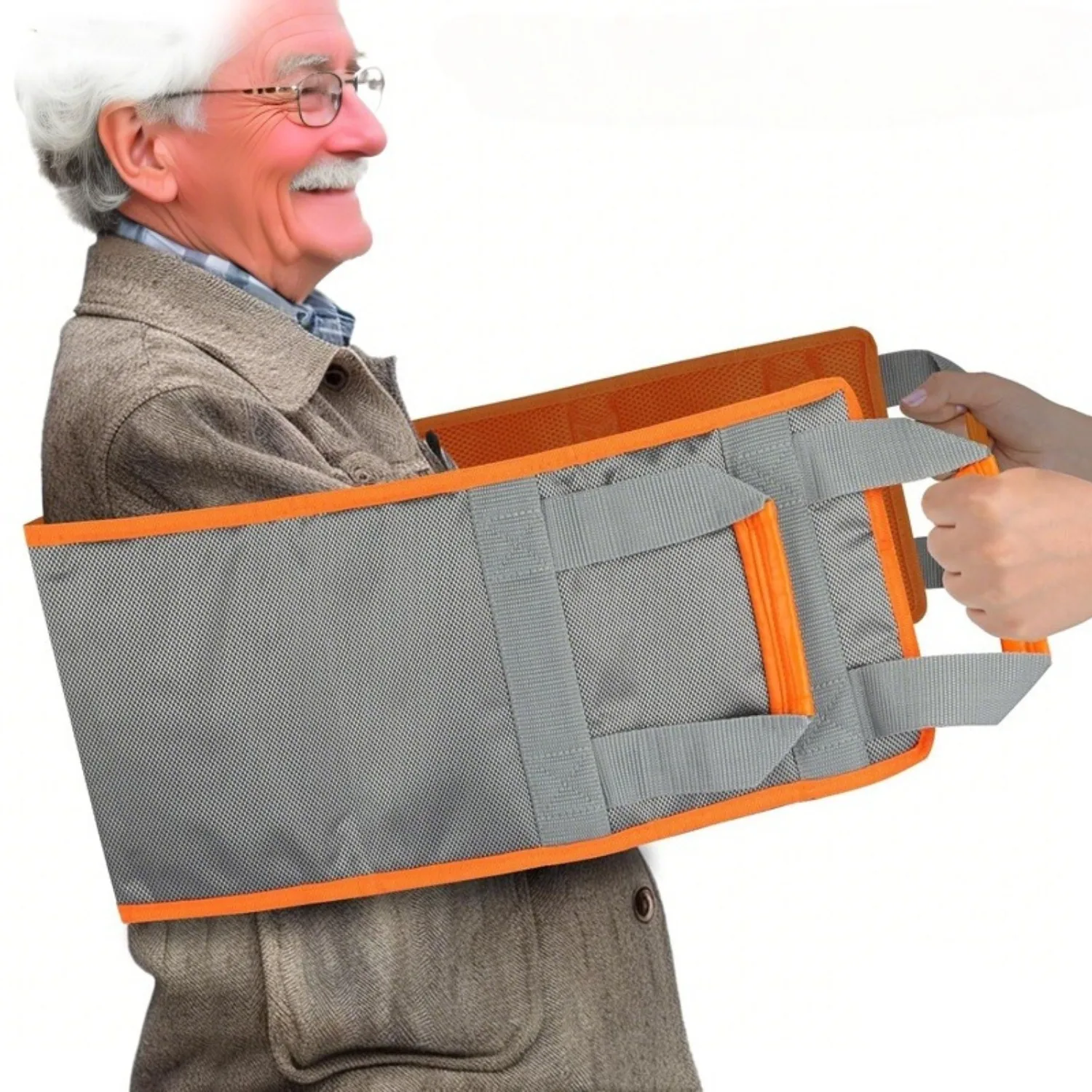 This padded patient transfer sling provides safe and comfortable support for moving bedridden or disabled individuals. Its waterproof fabric ensures durability and easy cleaning for everyday caregiving. The soft padded design helps reduce pressure and discomfort during repositioning. It is ideal for transferring patients between beds, chairs, and other surfaces. Strong reinforced stitching enhances safety and stability during lifting. The sling is designed for caregivers to move patients with less strain and improved control. Its multipurpose design supports repositioning, turning, and general mobility assistance. Wide support straps help distribute weight evenly to prevent injury. Suitable for elderly, disabled, and long-term bedridden patients. This sling is an essential tool for improving comfort and safety in home care or medical environments.