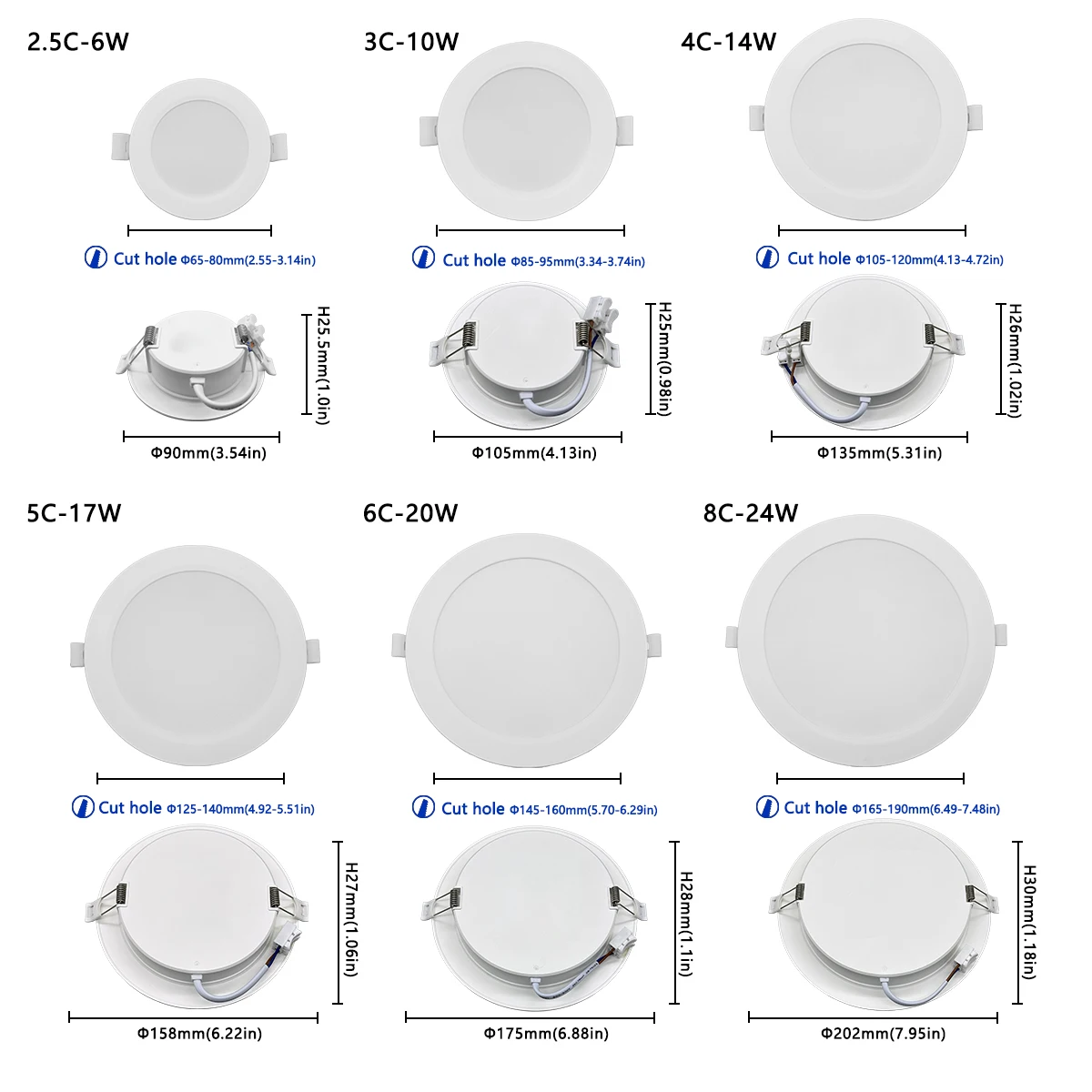 This recessed LED round panel light provides bright and efficient illumination for home indoor lighting. Available in 10W and 24W options, it suits different room sizes and lighting needs. Multiple color temperatures—3000K, 4000K, and 6000K—allow you to choose warm, neutral, or cool light. Designed for 110V and 220V power systems, it offers stable and reliable performance. The slim recessed design blends seamlessly into ceilings for a clean, modern look. Energy-efficient LED technology helps reduce power consumption and electricity costs. Suitable for living rooms, bedrooms, kitchens, and hallways. This LED downlight is an ideal choice for modern and practical indoor lighting solutions.