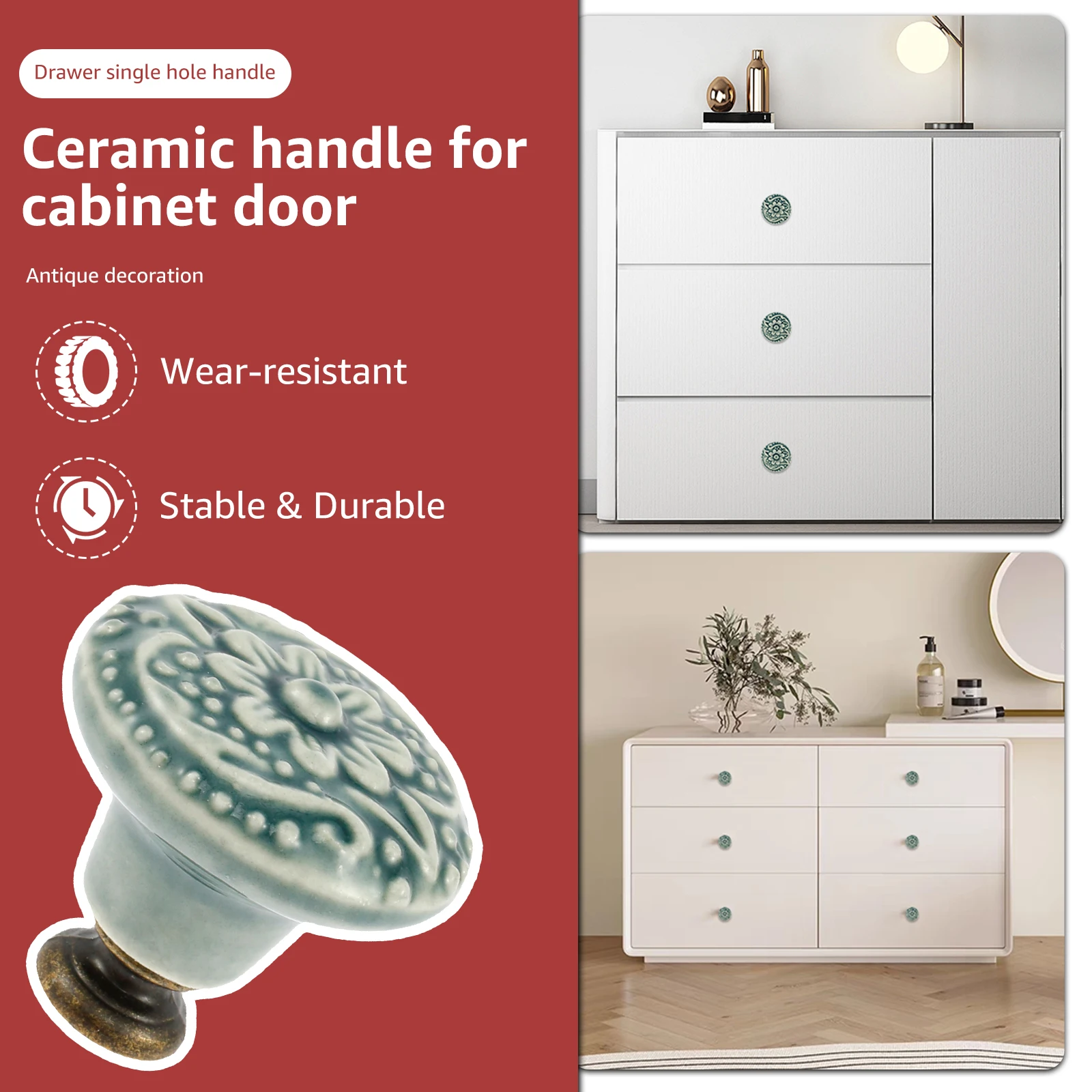 This retro ceramic drawer handle set is available in 10 or 20 pieces to suit different furniture needs. Made from durable ceramic, each knob features a decorative design that adds charm and character to cabinets and drawers. Ideal for cupboards, doors, dressers, and kitchen furniture, these knobs combine style with everyday functionality. The smooth glazed surface provides a comfortable grip and is easy to clean. Each handle comes with matching screws for quick and simple installation. Their versatile look complements vintage, farmhouse, and classic interiors. Perfect for furniture upgrades, DIY projects, or home décor renovations.