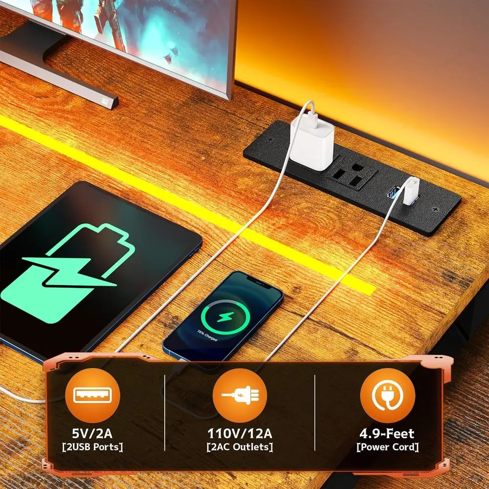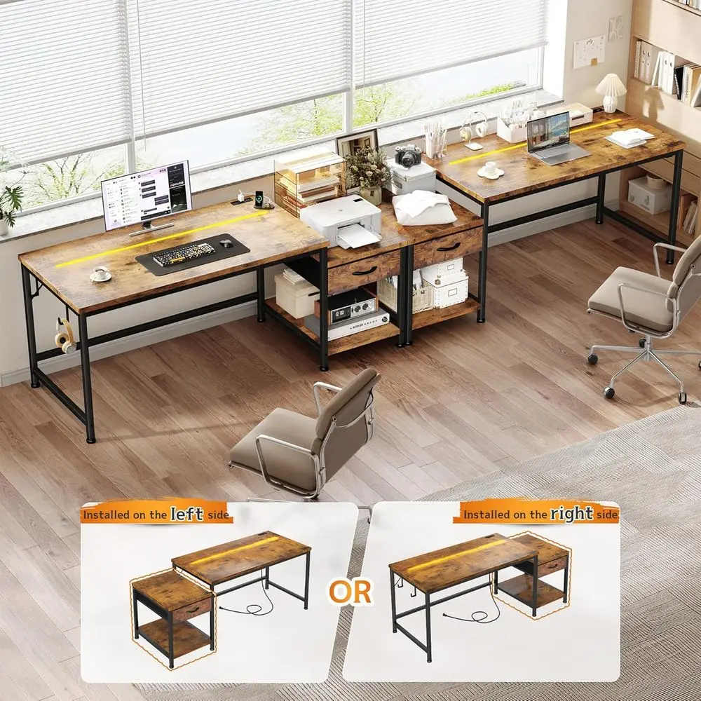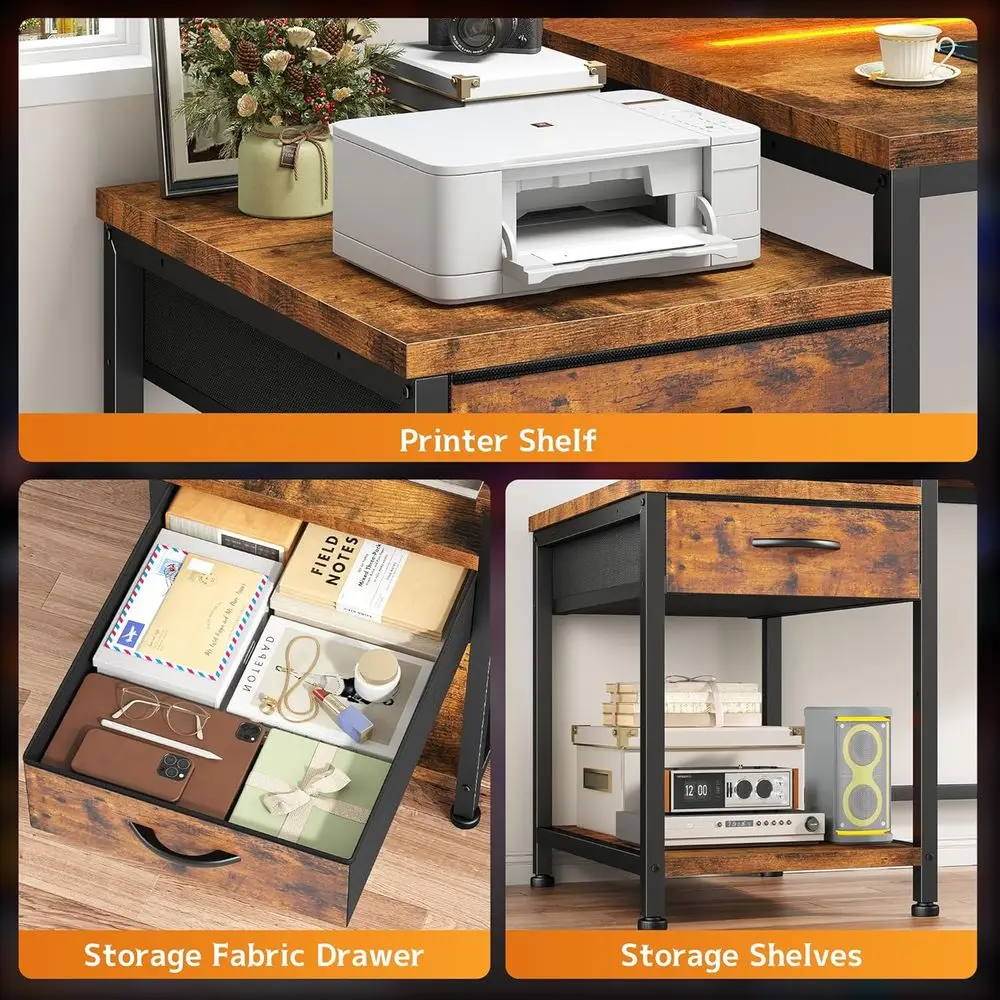 This 48.1-inch reversible desk is designed to adapt to different room layouts and work needs. The wide tabletop provides ample space for studying, writing, crafting, or computer work. Built-in power outlets add convenient access for charging devices and office equipment. Multiple storage drawers help keep supplies organized and within easy reach. A dedicated printer shelf offers additional functionality without cluttering the main workspace. The rustic-style finish adds warmth and character to home offices or study rooms. Sturdy construction ensures stability and reliable daily use. This desk combines flexible design, smart storage, and modern convenience in one practical workstation.