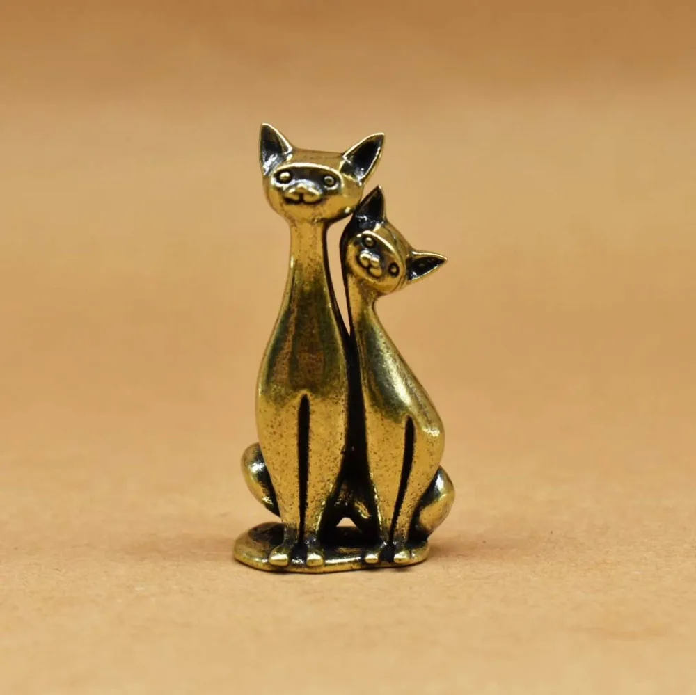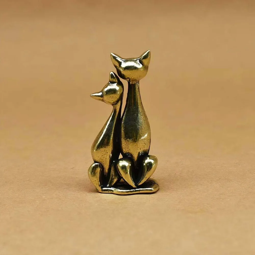 Add charm and elegance to your space with this Vintage Brass Couple Cat Sculpture. Crafted from high-quality brass, it features two intertwined cats symbolizing love and companionship. The smooth, antique finish gives it a timeless and sophisticated look. Perfect for decorating living rooms, offices, or bookshelves. Its compact size makes it ideal for desks, nightstands, or display cabinets. This sculpture doubles as both an art piece and a meaningful gift for cat lovers. The fine craftsmanship highlights delicate details and realistic textures. It adds warmth and artistic flair to any interior style, from modern to classic. Durable and easy to maintain, it will retain its shine for years. Celebrate love, connection, and feline grace with this exquisite brass cat ornament.