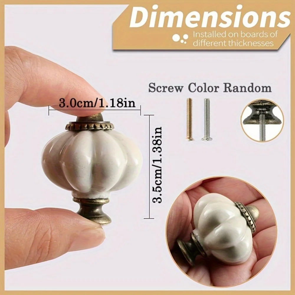 These vintage white pumpkin handles bring a charming and decorative touch to cabinets and furniture. Designed with a classic pumpkin shape, they add elegance and character to dressing cabinets and decorative storage units. The white vintage finish creates a soft, timeless look that complements both indoor and outdoor décor. Crafted for durability, they are suitable for regular use on cabinets, drawers, and doors. The rounded shape offers a comfortable grip for easy opening and closing. Ideal for vintage, farmhouse, or shabby chic styles. These handles are perfect for refreshing furniture or completing decorative cabinet projects.